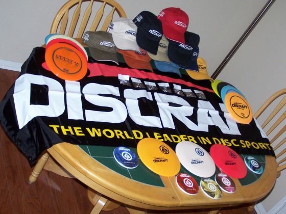 The original order of 70 player packs has been sold out, but a second box of goodies is now on the way from the Discraft folks back in Michigan. Based on the number of snail mail and e-mail entries that have come in in the past few days, these will not last very long, so sign up ASAP. For $25 you will receive 2 brand-new prototype Discraft discs (not yet released for public sale!), a Discraft Ace Race hat, a full-color mini-Ultra Star and new this year, a metal Ace Race bag tag. All of this comes out to be a $67 value.