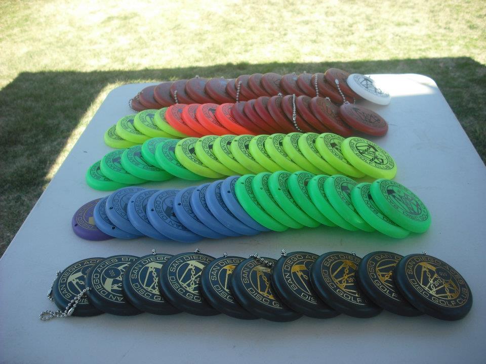 Seventy-five disc golfers met at Kit Carson Park this last Saturday with one goal in mind: to leave the course that day with one of the coveted San Diego Aces black bag tags. The black color is reserved for tags 1 through 10 each year and competition is fierce for these tags. This year, our bag tag supplier (Little Flyer) had run out of the black mini discs used to make the tags when we ordered 2012 bag tags back in November, which meant that when the first 2012 tags were distributed back in December, the top ten tags were not included.